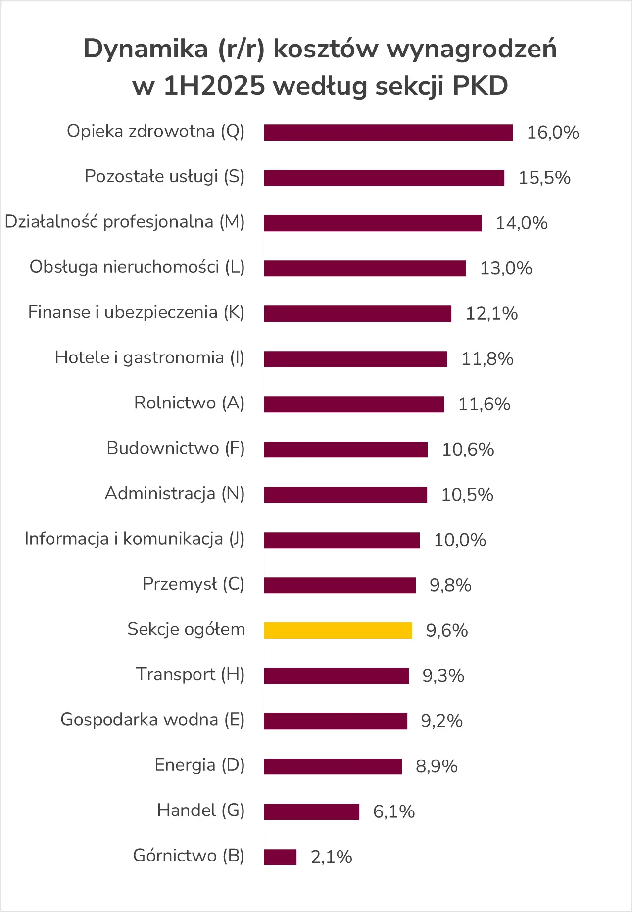 Sektory usługowe wykazały wyższą dynamikę płac niż przemysł, co częściowo wynika z charakterystyki rynku pracy w tych segmentach. Duże przedsiębiorstwa odczuły mniejszą presję płacową, głównie ze względu na ograniczony wzrost popytu na ich usługi.