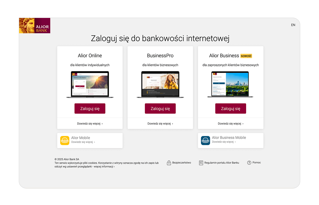 2. Wybierz system Alior Business.