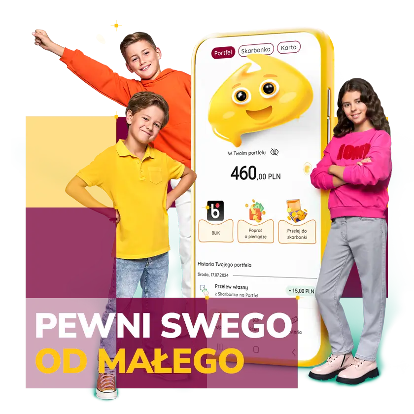 - Wraz z kontem, dzieci mogą zyskać dostęp do aplikacji mobilnej dostosowanej do swojego wieku. Zapewniamy kontrolę rodzicielską, możliwość korzystania m.in. z funkcji BLIK, a także szeroki wybór wizerunków kart debetowych. Dzięki temu każdy – niezależnie od wieku – znajdzie produkt dla siebie.