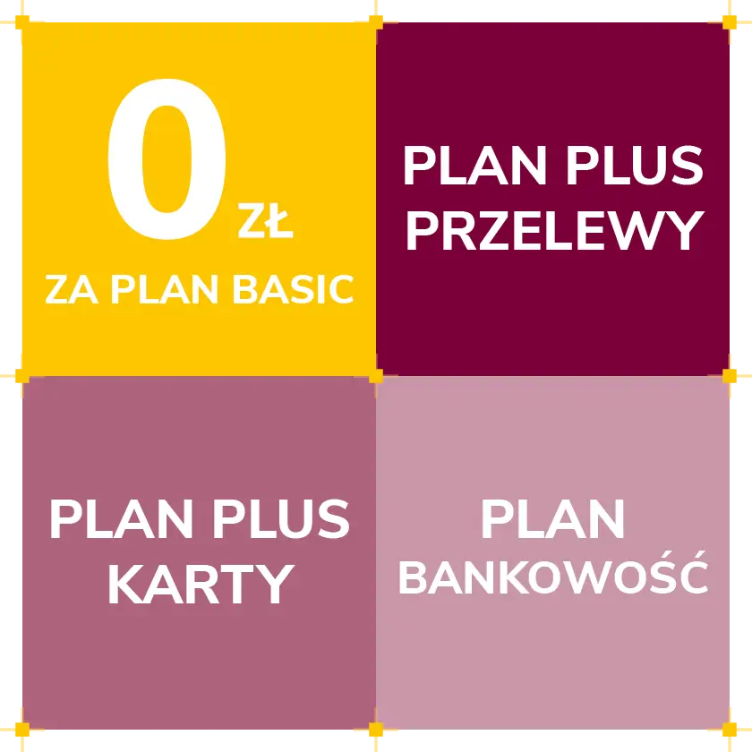 Proponujemy 3 Plany Plus do wyboru z szeregiem korzyści za 30 zł miesięcznie każdy. Plany Plus to pakiety usług udostępnianych w formie miesięcznego abonamentu, które możesz włączać i wyłączać w dowolnym momencie – zarówno w placówce banku, jak i samodzielnie w bankowości internetowej. Z usług udostępnionych w poszczególnych Planach Plus korzystasz bez dodatkowych opłat.