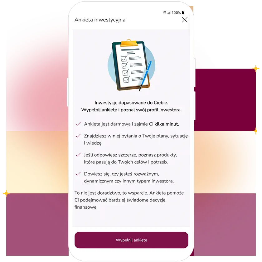 Wypełnij ankietę inwestycyjną i dowiedz się, jakie produkty najlepiej spełniają Twoje cele.