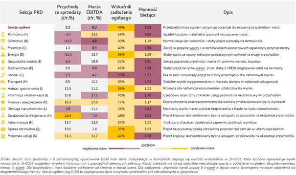 Największe przychody generowały przemysł i handel, odpowiadające łącznie za ponad 2/3 wartości sprzedaży w gospodarce. Jednak w większości sekcji wzrost przychodów nie przekroczył wartości inflacji CPI, co podkreśla trudne otoczenie rynkowe. Sektory usługowe radziły sobie lepiej niż produkcyjne, co odzwierciedlało charakter popytu w tym okresie.