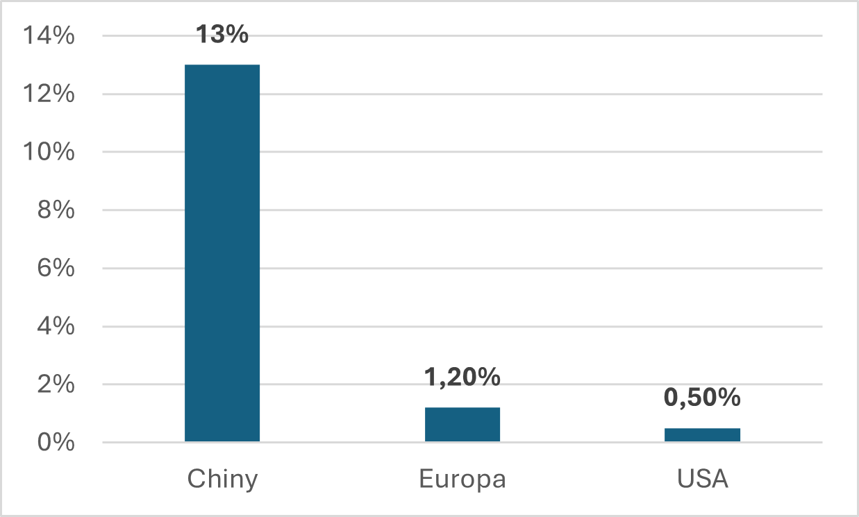 - Sprzedaż elektrycznych ciężarówek (BEV HDV) rośnie dynamicznie – Chiny osiągnęły już 13% udziału w 2024 r., podczas gdy Europa 1,2%, a USA ok. 0,5%.
