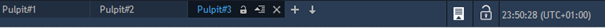 Pasek statusu znajduje się na dole okna platformy i zawiera zakładki poszczególnych pulpitów, monitor powiadomień, możliwość blokowania handlu, aktualną strefę czasową (z możliwością jej zmiany). Na tym pasku pojawiają się też wiadomości dotyczące newsów lub potwierdzeń zawieranych transakcji.