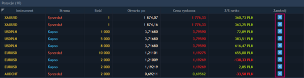 Zamykanie pojedynczo lub grupowo otwartych pozycji