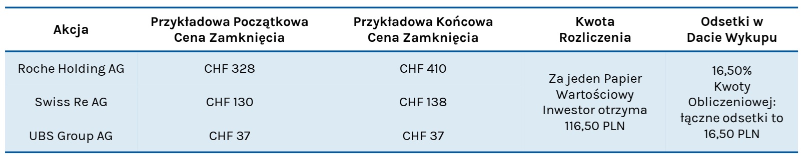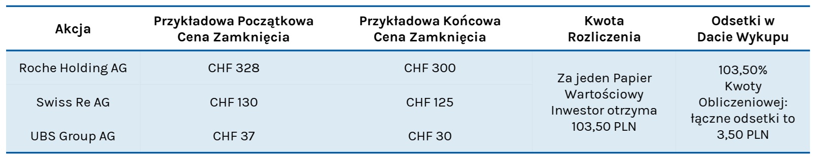 Inwestycja w obligacje strukturyzowane z ochroną kapitału, z opcją autocall, powiązane z akcjamiRoche Holding AG, Swiss Re AG i UBS Group AG.