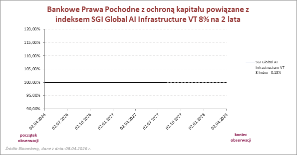 | Bankowe Prawa Pochodne z ochroną kapitału powiązane z indeksem SGI Global AI Infrastructure VT 8% Index na 2 lata | 2.04.2026 | 3.04.2028 | Przejdź do oferty |
