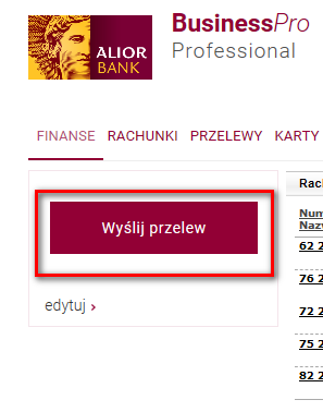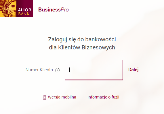 Aby zalogować się do systemu bankowości internetowej dla klientów biznesowych BusinessPro, wejdź na stronę https://www.aliorbank.pl/ i kliknij przycisk „Zaloguj się” umieszczony w prawym górnym rogu lub skorzystaj z bezpośredniego linku logowania do systemu: https://bn.aliorbank.pl/.