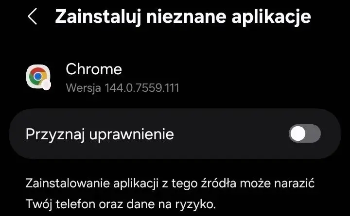 Nie przyznawaj uprawnienia do instalacji nieznanych aplikacji.