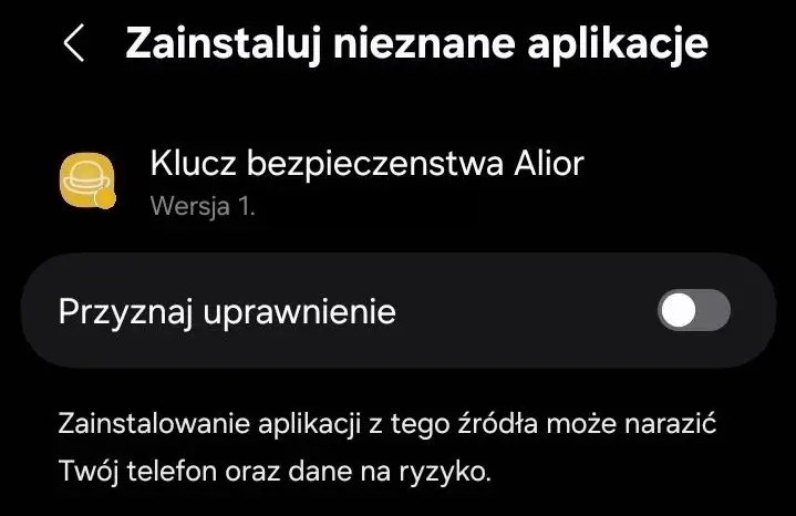 - aplikacja mobilna Alior Banku nigdy nie wymaga pomijania ostrzeżeń ani instalowania jakichkolwiek dodatkowych aplikacji zabezpieczających,