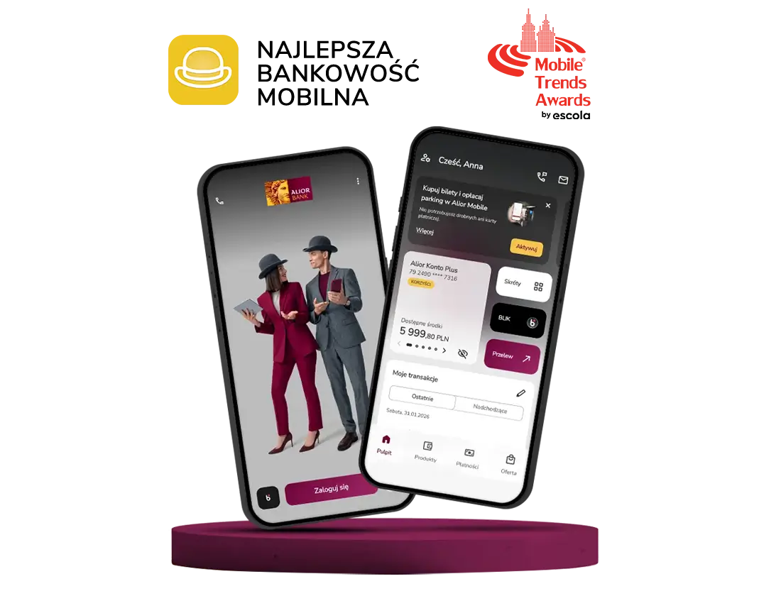 Aplikacja Alior Mobile została uznana za najlepszą bankową aplikację mobilną w konkursie Mobile Trends Awards, jednym z najważniejszych wydarzeń branży w Polsce.